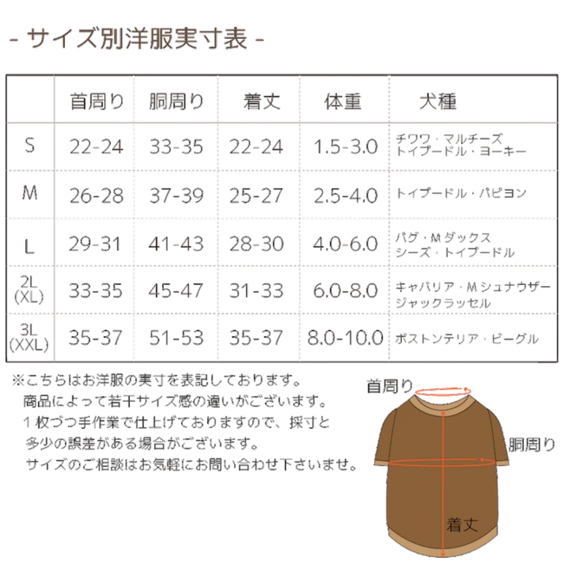 XS/S/M/L/XLの5サイズ展開で、チワワ、ポメラニアン、トイプードルなどにぴったりなデザインです♪
