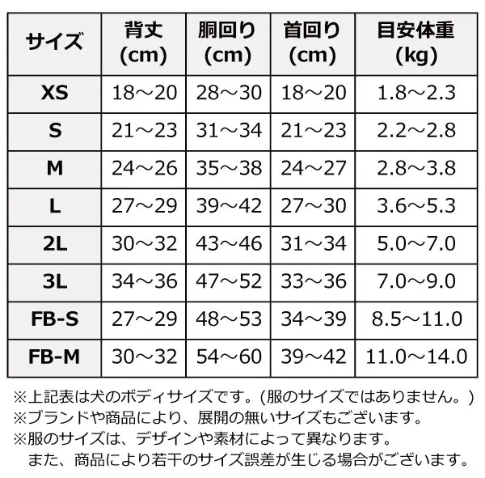 備考 ・クール加工、虫除け加工を施しております。・着用写真は実際の色合いと異なる場合がございます。・サイズ表は犬のボディサイズとなります。服のサイズは素材やデザインによって若干のサイズに誤差が生じる場合がございます。