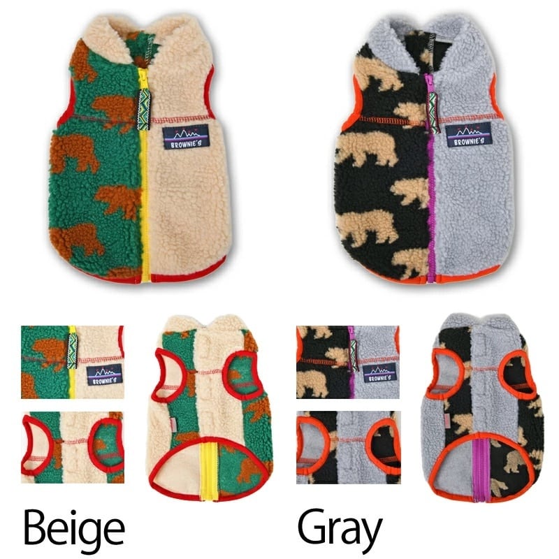 BROWNIE'S(ブラウニーズ) クマ柄もこもこベスト S/M/L/XL/XXL 犬服 ドッグウェア トイプードル チワワ ポメラニアン