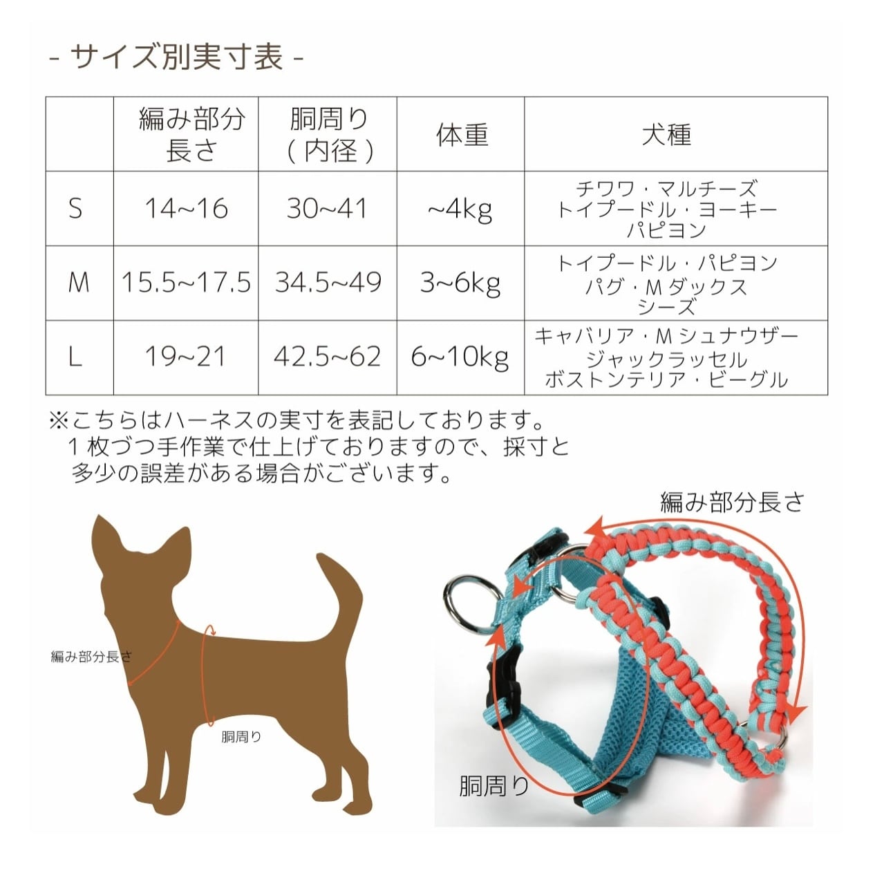 Solgra-ソルグラ- バイカラーコードハーネス Sサイズ カラフル パラコード トイプードル チワワ ポメラニアン