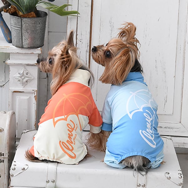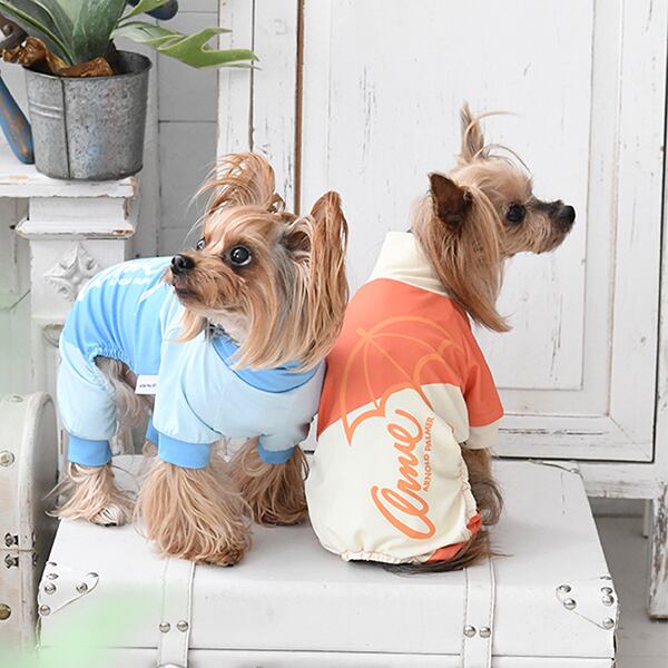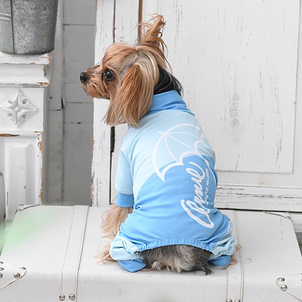 腕から足まで覆えるロンパースは、激しく遊ぶ愛犬ちゃんの汚れ防止にもなります。