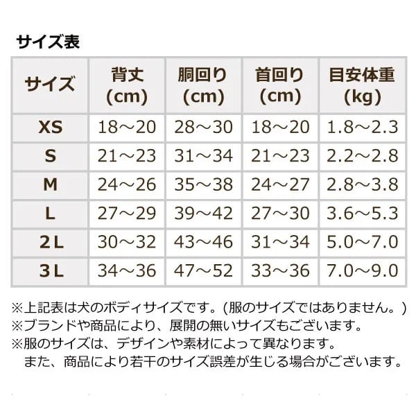 ※服のサイズは素材やデザインによって若干のサイズに誤差が生じる場合がございます。