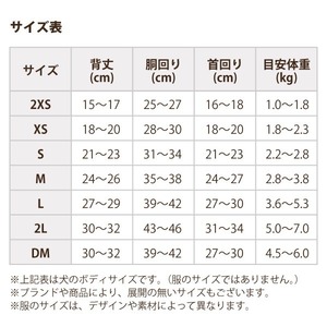 ※サイズ表は犬のボディサイズとなります。