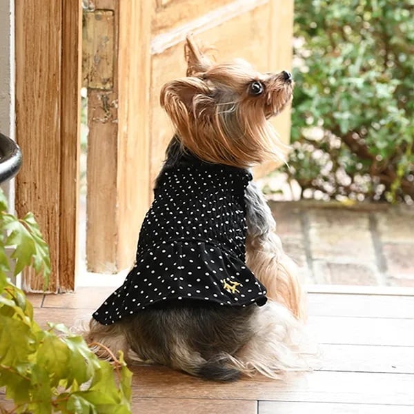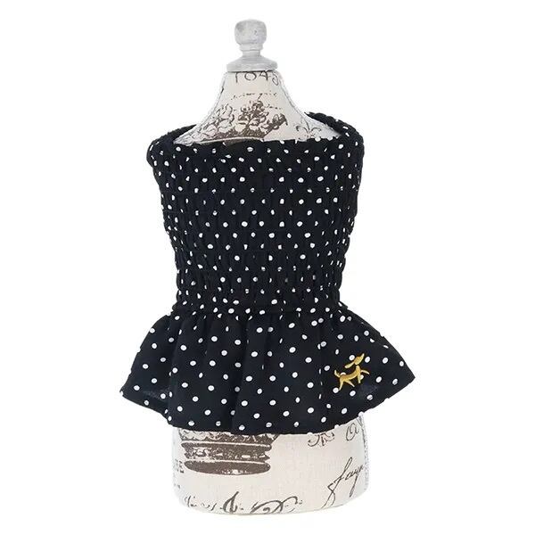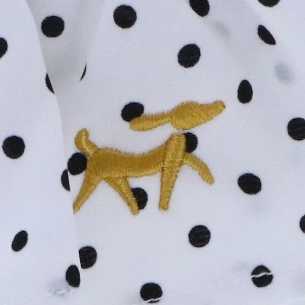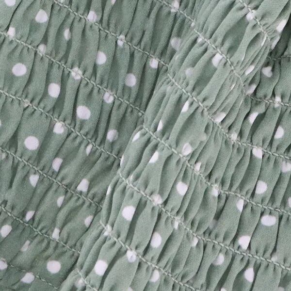 ドット柄のプリントが目を引くブラウスです。