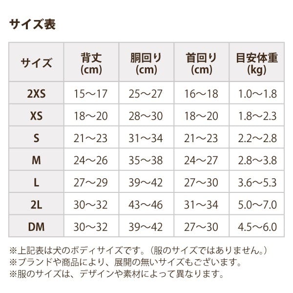 ※サイズ表は犬のボディサイズとなります。