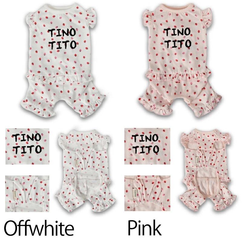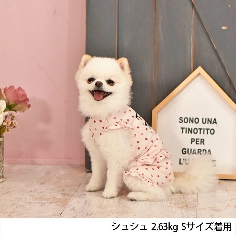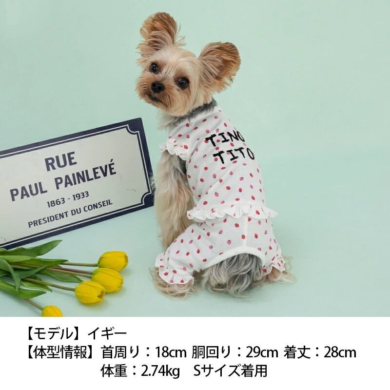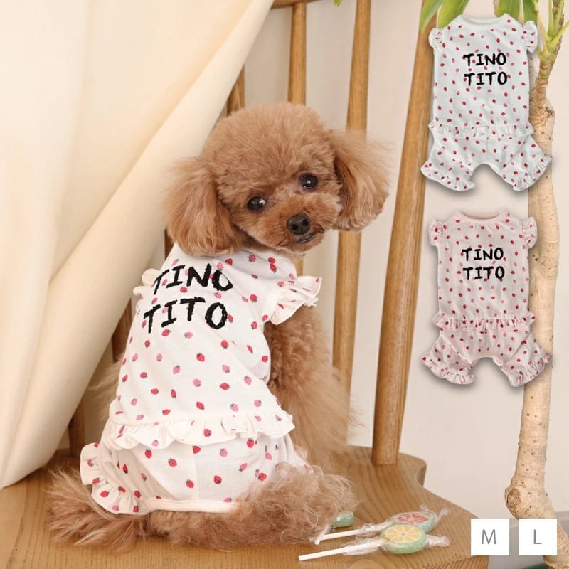 【XL/XXL】 TINOTITO -(ティノティート) いちごプリントつなぎ - 犬服 ドッグウェア トイプードル チワワ ポメラニアン TT23SS