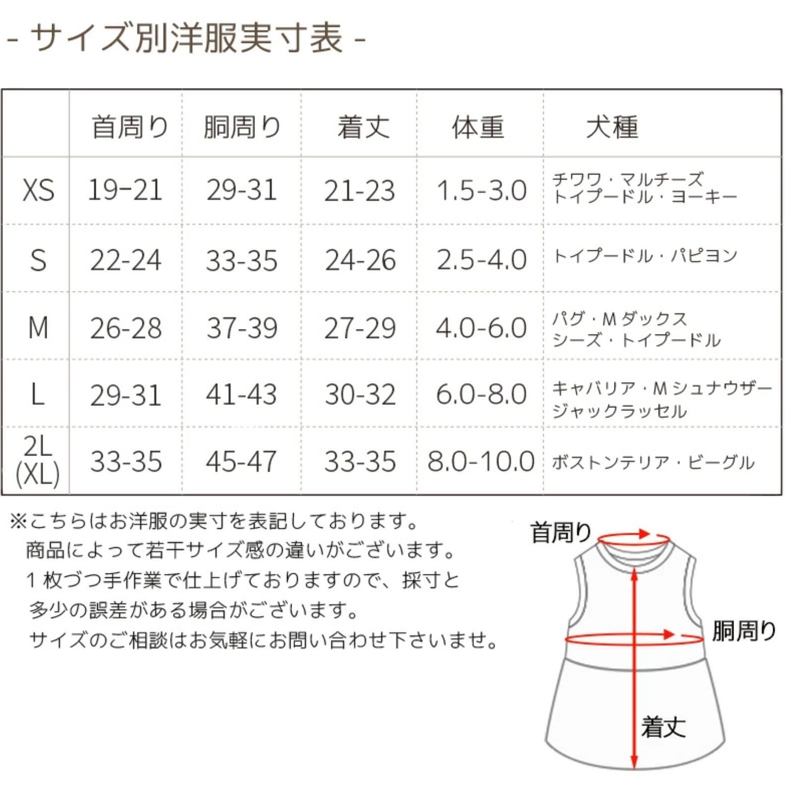 サイズ展開 XS/S/M/L/XL